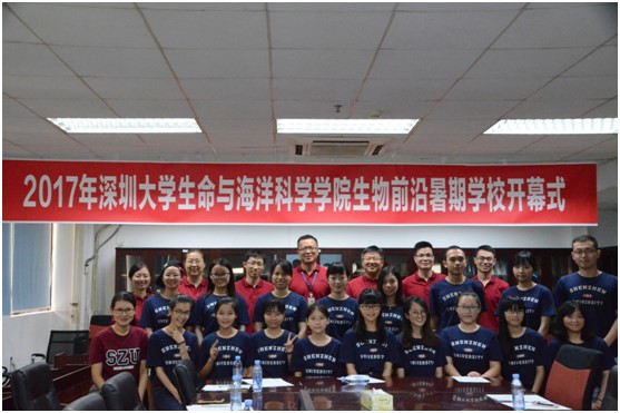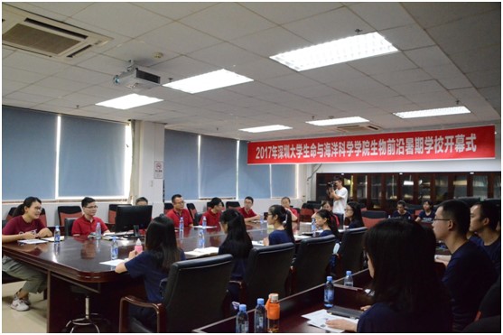 2017年7月12日,生命与海洋科学学院在实验楼S333会议室举办了“2017年深圳大学生物前沿暑期学校”开幕式,本次暑期学校活动得到了广东省研究生教育创新计划项目、深圳大学“研招暑期学校暨研究生精品课程项目”的立项资助。开幕式邀请了学院胡章立院长,李辉副院长,李荔副教授,王立岩副教授,王潮岗老师,刘琳老师和肖时锋老师参加。