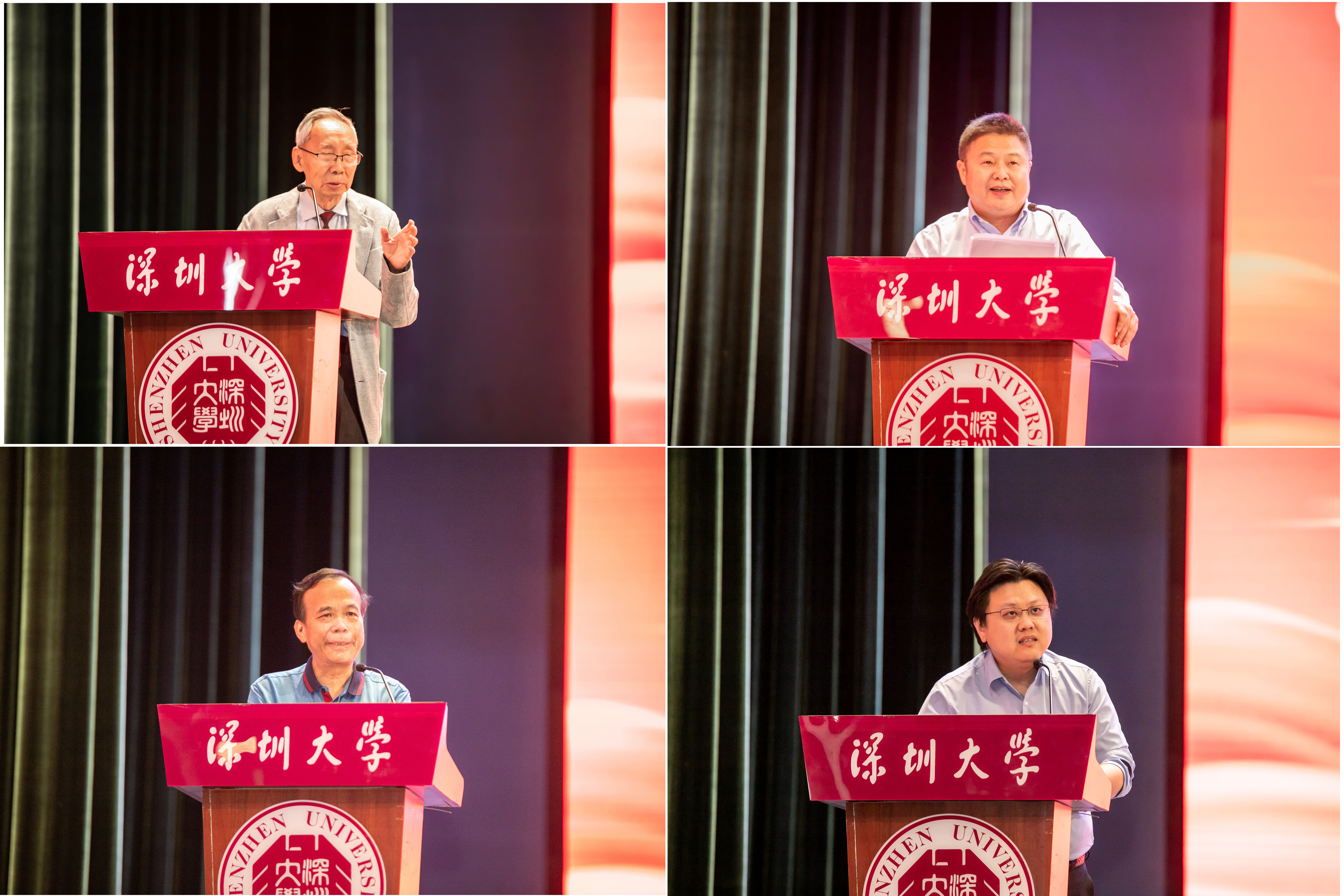 学院首任院长、名誉院长、中国科学院院士倪嘉缵在致辞中回顾了学院创建之初的筚路蓝缕,认为要贯彻党的二十大精神,全面提高教学质量,着力造就拔尖创新人才。院长胡章立在致辞中认为学院经过20年的发展,在教学科研、人才培养、社会服务等方面取得突破性成绩,建成了特色鲜明、有重要影响的高水平教学研究型学院,这些成绩的取得离不开所有生科人的辛勤耕耘与无私奉献。继往开来,任重道远,学院将继续以锐意改革和勇于创新的精神,坚持为党育人、为国育才,积极服务粤港澳大湾区和深圳先行示范区建设等国家重大战略需求,为建设世界一流综合性大学、中国特色社会主义标杆大学做出重要贡献。学院退休教师代表余少文老师认为学院发展20周年,离不开深圳市和学校的大力支持,退休的老师们感到非常欣慰,未来生物行业依旧竞争激烈,师生们任重道远,希望师生团结一起,为深圳大学成为世界一流大学共同努力。校友代表白羽深情回顾了自己在校时学习、生活的美好经历,分享了自己逐步走上研究道路的故事,认为要谨记母校“自立、自律、自强”校训,要勤于自省,做一个有梦想的人,做到仰望星空,脚踏实地,当下更努力,明天会更好!
