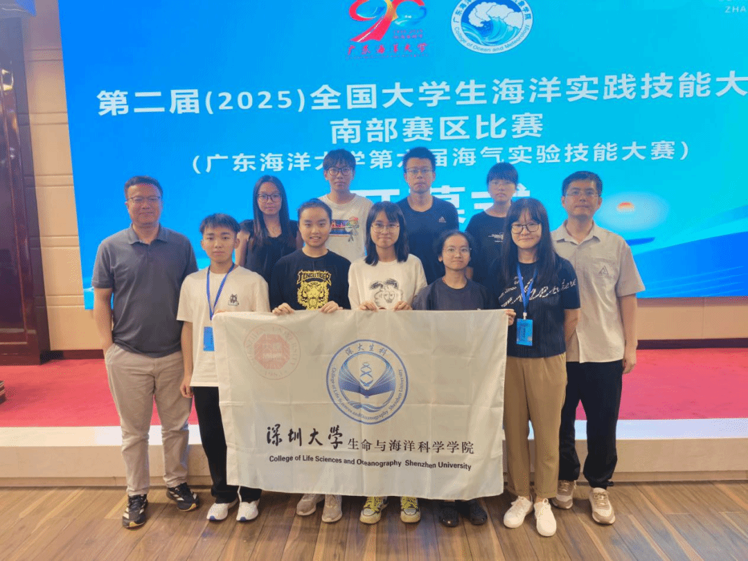 在第二届(2025)全国大学生海洋实践技能大赛(南部赛区)中,深圳大学生命与海洋科学学院海洋科学专业派出的两支队伍喜获佳绩。“HydroX队”(队员:郑思源、赵文钰、王鑫权、林圭漩)勇夺赛区二等奖(总排名第五名),强势晋级全国总决赛;李春祥、陈乐之、卢晓敏、杜洛颐组成的“深海队”荣获赛区三等奖。参赛队伍由陈思、王淋淋、牛茜如三位老师指导,成绩的取得展现了深圳大学海洋科学专业的强劲实践实力。