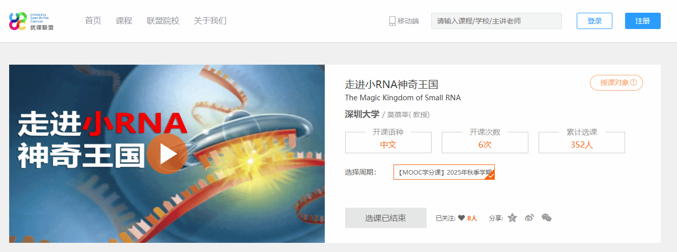 课程配套自译教材《植物小RNA》(高等教育出版社),注重培养学生的科学思维与创新能力。欢迎选修《植物小RNA》课程,让我们一起走进植物小RNA神奇王国,探索生命表象之下的精密逻辑。