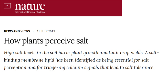 2019年7月31日,深圳大学生命与海洋科学学院在国际顶尖期刊《Nature》正刊以长文(Article)形式发表题为Plant cell-surface GIPC sphingolipids sense salt to trigger Ca2+ influx 的突破性研究成果。同时,《Nature》同期刊发 News & Views对该文进行深度报道。生命与海洋科学学院蒋中浩博士为第一作者,陶明博士和吴飞华博士等为并列第二作者,胡章立教授为通讯作者。这是深圳大学建校36年首次作为第一完成单位、第一作者、以及通讯作者在国际顶级综合性期刊《Nature》正刊上以长文形式发表研究性论文。