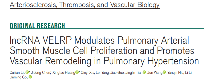 2024年10月3日,深圳大学生命与海洋科学学院苟德明教授团队在Arteriosclerosis, Thrombosis, and Vascular Biology发表了题为“lncRNA VELRP Modulates Pulmonary Arterial Smooth Muscle Cell Proliferation and Promotes Vascular Remodeling in Pulmonary Hypertension”的论文,首次揭示了lncRNA VELRP(Vessel Enriched Long noncoding RNA regulated by PDGF-BB)在PDGF-BB诱导的肺动脉平滑肌细胞(PASMCs)增殖及血管重构中的关键作用。通过一系列体内外实验,研究证实了VELRP在促进PAH病理进程中的重要性,为肺动脉高压的治疗提供了新的思路及靶点。