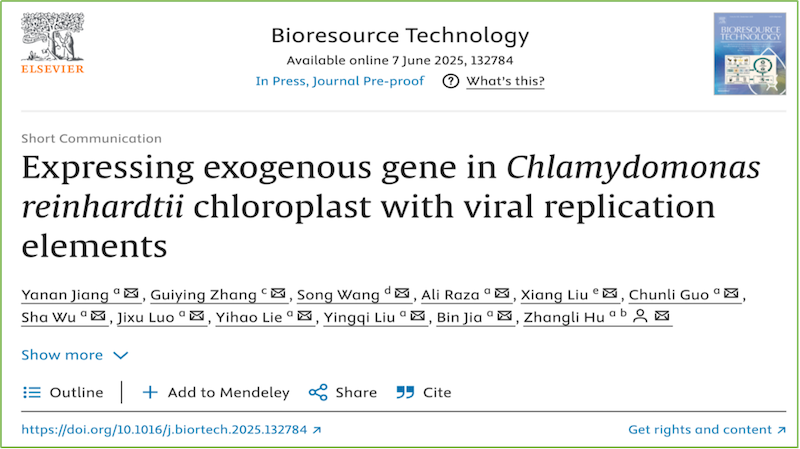 2025年6月7日,深圳大学生命与海洋科学学院胡章立讲席教授团队在国际知名期刊《Bioresource Technology》(中科院一区TOP,IF 9.7)发表题为“Expressing exogenous gene in Chlamydomonas reinhardtii chloroplast with viral replication elements”的研究论文。该研究在莱茵衣藻叶绿体中成功构建一种基于病毒复制元件的外源基因高效表达平台。