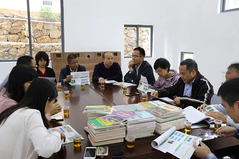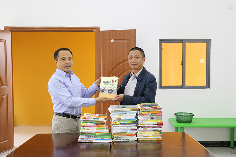 随后,进行农业科技用书捐赠仪式和开展农业科普座谈会。“扶贫必扶智”,学院精心选购了80余本农业科技发展、农业技术、农业科普、家禽圈养技术等相关书籍,供村民阅读,提高村民农业知识,尤其是农产品种植和家禽养殖技术。梁杰书记代表学院向村委会捐赠了这一批书籍。龙华生物产业创新研究院副院长周文明博士详细介绍现代农业概况及技术,分享利用新技术,蔬菜、水果达到高品质创收的前景,希望利用专业优势,结合当地条件,提供技术支持,提高农作物品质,打通销售渠道。与会人员讨论热烈,进一步深入探讨乡村扶贫工作方法,寻求合作机会,带领村民脱贫致富。