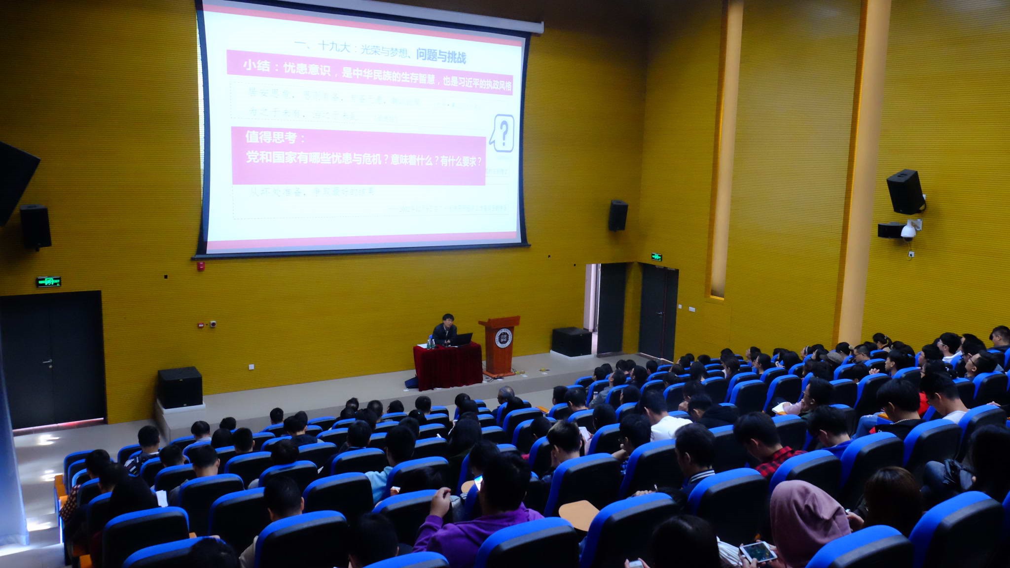 汪永成教授为我院师生做了题为《不忘初心牢记使命,居安思危维护权威》专题报告。汪教授的报告分为十九大:光荣与梦想、问题与挑战;国家/民族:三大陷阱与保持党的执政地位;执政党:四大考验、四大风险与自我革命、从严治党;领导集体:四个重大与集中统一、领导核心;新时代中国治理的总趋势与总要求:维护权威等五个部分。详细解读了我们面临的问题与挑战,如何正确看待“三大陷阱”,我们党如何自我革命、从严治党。强调学习宣传贯彻十九大重要目的之一就是维护权威:中央的权威、核心的权威,居安思危,维护权威,也是我们普通党员的责任。按照习近平总书记的要求,全党同志都要自觉坚持和维护党的领导,自觉站在党的立场上,对党忠诚、为党分忧、为党担责、为党尽责,竭尽全力完成党交给的职责和任务。