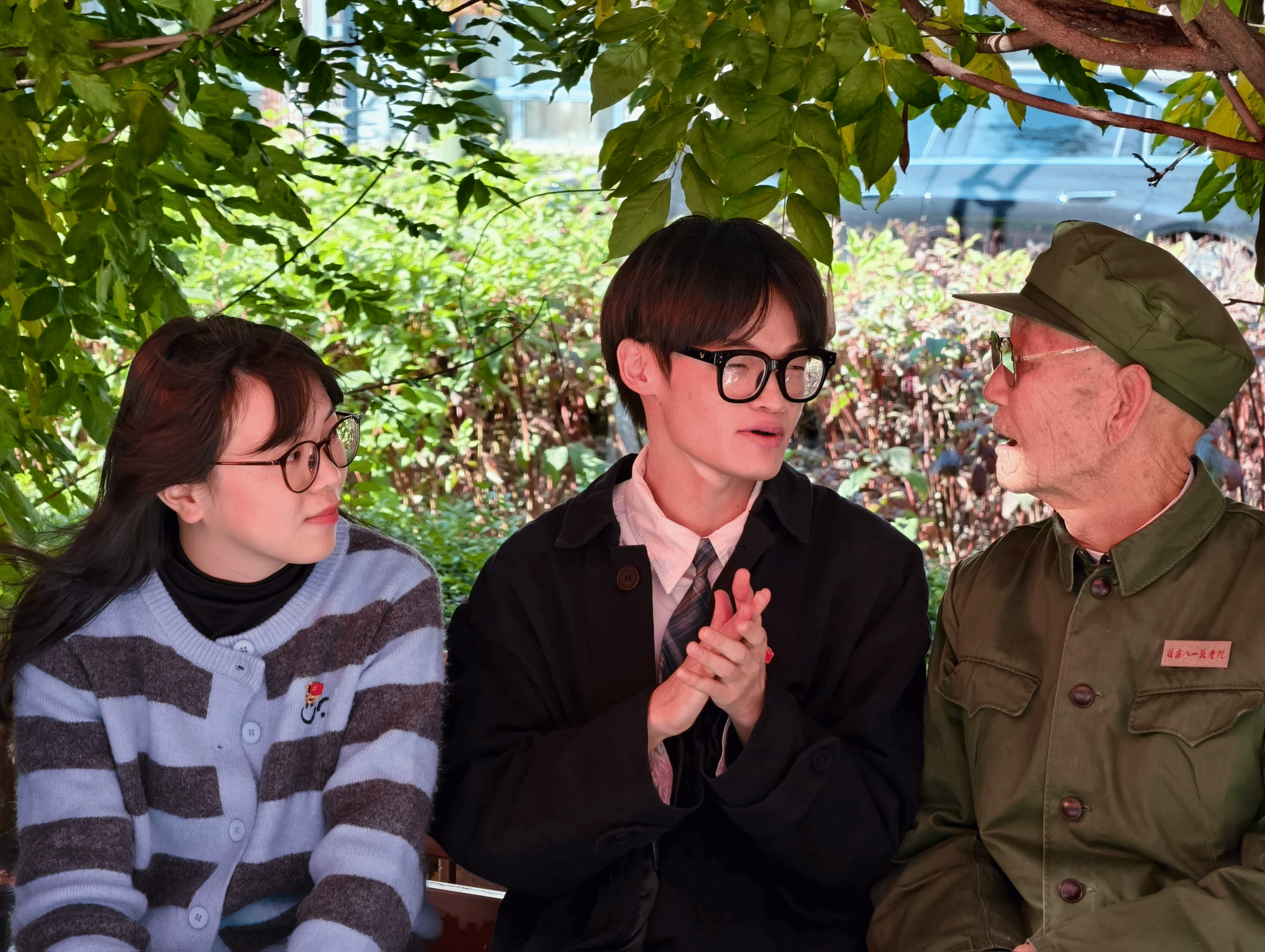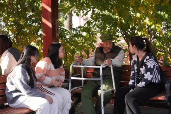 学员们与老人们促膝长谈,聆听他们亲历的南泥湾大生产、抗美援朝等峥嵘岁月。一段段饱经沧桑的讲述,让艰苦奋斗的革命精神与炽热深沉的家国情怀变得无比具体而深刻,深深触动着每一位学员。大家将满心的感动与敬意凝于笔端,在留言簿上一笔一画写下温暖真挚的祝福。