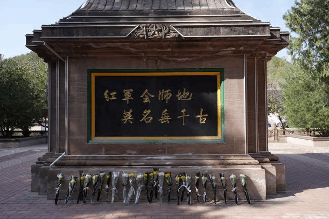 行程始于吴起退耕还林公园,星火先锋队的旗帜在黄土高原凛冽而自由的风中猎猎飞扬,仿佛诉说着不朽的誓言。学员们一路前行,抵达中央红军长征胜利纪念园。巍然耸立的纪念碑下,鲜红的党旗迎风招展,学员们伫立凝望,仿佛听见了历史深处的回响——那是先辈们铿锵的脚步,是信仰在风沙中燃烧的声响。