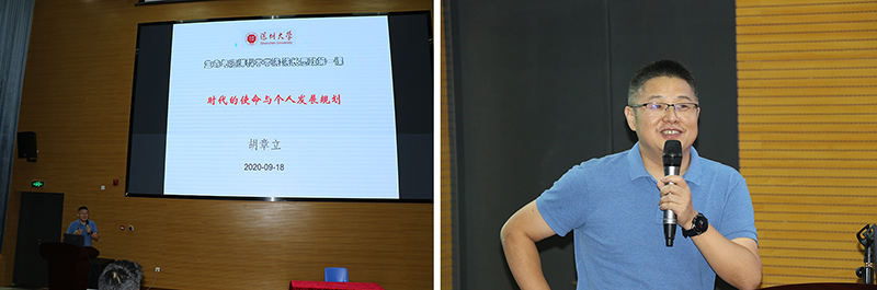 学院院长胡章立教授给新生上《时代的使命与个人发展规划》“思政第一课”,包括我们的时代和我们的学院两部分。胡院长认为我们的时代是一个令人激动的时代、一个伟大的时代,讲述了改革开放40年取得的巨大成就和面临的机遇挑战,以及后疫情时代的格局。对学院的发展历程、人才队伍、教学科研平台、研究方向做了详细介绍,希望同学们做好近期规划和长期规划,明确人生目标,不负时代使命,不负青春时光,学有所成。