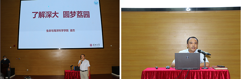 学院党委梁杰书记给新生上《了解深大 圆梦荔园》“思政第一课”,包括校情校史和规划未来两部分内容,阐述了学校的“一个目标、两个重要阶段、三大定位、四大校区”,以图文并茂的方式,展示学校建校以来的“大事记”。同时介绍了全国抗击新冠肺炎疫情情况及疫情防控取得的重大战略成果,学院涌现出的抗疫先进人物,目前抗疫阶段要注意的事项。希望同学们规划好未来,做有精神力、判断力、创新力、行动力的大学生。