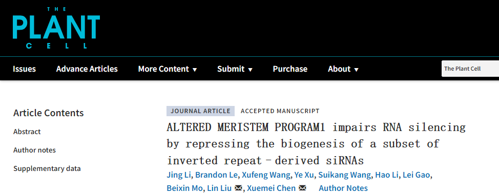 2024年11月6日,生科院刘琳副教授课题组与北京大学陈雪梅院士团队合作在Nature Index期刊The Plant Cell(1区TOP,影响因子10.0)在线发表题为ALTERED MERISTE…