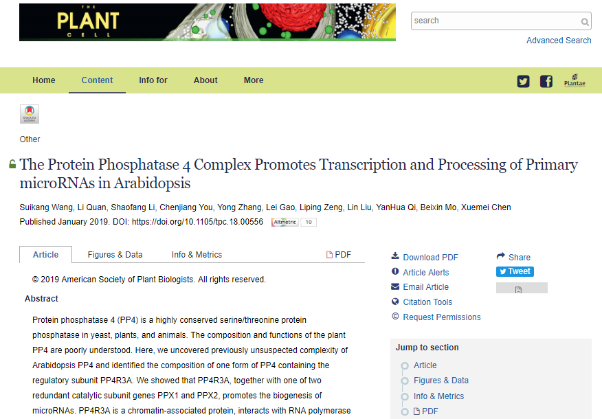 2019年1月23日,植物学顶级期刊《植物细胞》(The Plant Cell)在线刊登了生命与海洋科学学院——广东省植物表观遗传学重点实验室的最新研究成果:“The Prote…