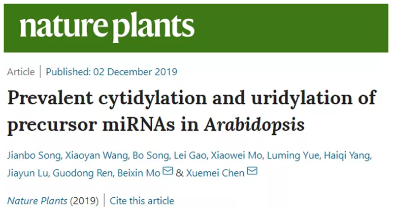 2019年12月2日,《Nature Plants 》在线发表了深圳大学生命与海洋科学学院莫蓓莘教授团队研究论文,题为“Prevalent cytidylation and uridylation of precur…