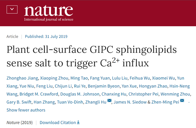 2019年7月31日,深圳大学生命与海洋科学学院在国际顶尖期刊《Nature》正刊以长文(Article)形式发表题为Plant cell-surface GIPC sphingolipids sense salt t…