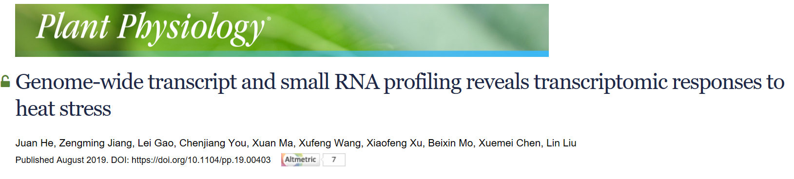 近日,《Plant Physiology》在线发表了深圳大学生命与海洋科学学院刘琳博士课题组题为“Genome-wide transcript and small RNA profiling reveals transcrip…