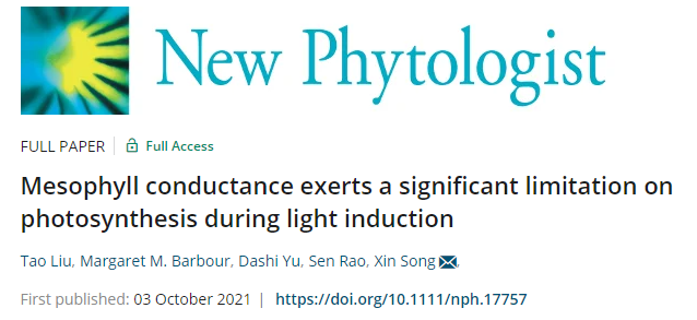 近日,深圳大学生命与海洋科学学院宋欣教授团队在植物领域国际著名期刊《新植物学家》(NEW PHYTOLOGIST; IF=10.151)发表了题为“Mesophyll conductance exer…