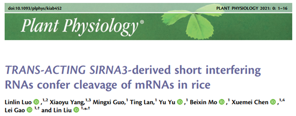 2021-10-15生命与海洋科学学院刘琳/高雷课题组在《Plant Physiolog…