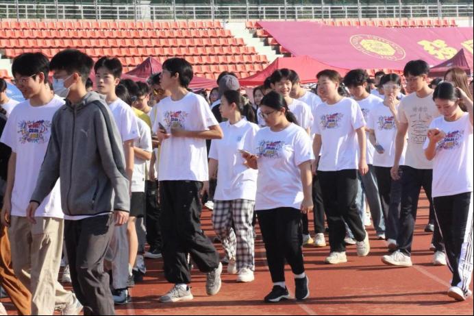 随着校运会开幕式各项议程的稳步进行,大家翘首以盼的“荔枝快跑”活动终于启幕。这不仅是一场赛事,更是一次色彩的“狂欢盛宴”。同学们身着精心设计的主题T恤,如同彩虹般在校园内穿梭,他们肆意挥洒汗水,尽情展现生命的蓬勃朝气,享受着色彩带来的无尽欢乐与激情。