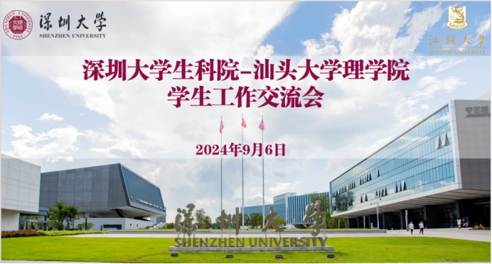 On the afternoon of September 6, 2024, student representatives from the School of Life and Ocean Sciences of Shenzhen University and the School of Science of Shantou University held a student activity exchange and sharing meeting in Zhicheng Academy of Shantou University. The conference aims to strengthen communication and cooperation between the students' Union and the Graduate Student Union of the two houses, promote the sharing of experience in academic, scientific research, student affairs and other aspects, and jointly explore new opportunities for future development.