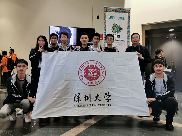 2019年10月30日-11月5日,在美国波士顿海因斯会议中心(Hynes Convention Center)举行的第十五届国际基因工程机器大赛(iGEM)总决赛的赛场上,深圳大学参赛团队与来自哈佛、剑桥、北大、清华等全球45个国家的学生同台竞技,从300多支参赛队伍中脱颖而出,荣获金奖,并获“最佳制造类项目奖”(Best Manufacturing Project)单项奖提名。