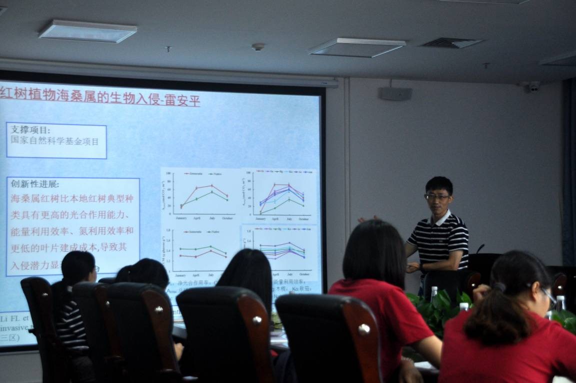 刘斯穆老师在进行植物逆境生物学课题组介绍