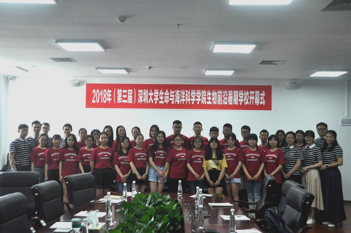 2018年7月9日生命与海洋科学学院在西丽校区A6-501会议室举办了“2018年深圳大学生物前沿暑期学校”开幕式,本次暑期学校活动得到了广东省研究生教育创新计划项目、深圳大学“研招暑期学校暨研究生精品课程项目”的立项资助。开幕式邀请了学院李辉副院长,苟德明教授,王娟副教授,王潮岗老师,刘斯穆老师,黄夏子老师和肖时锋老师参加。