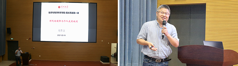 院长胡章立教授给新生带来以“时代的发展与个人的使命”为主题的思政第一课。他认为,我们正处于高速发展的时代,有机遇也有挑战,希望各位同学能勇于抓住机遇,创造自身的美好未来。另外,胡院长详细介绍了学院的发展史、师资力量、学科特色与人才培养成就等方面,希望同学们珍惜大学时光,为建设高水平、有特色、快速发展的生科院做出自己的贡献,也希望同学们可以在生科院这个平台实现自我,在百年不遇、万众创新的新时代放飞梦想,争当时代新青年。