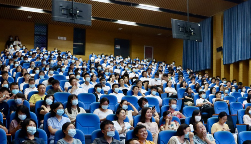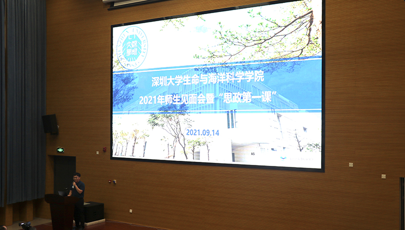 2021年9月14日下午,深圳大学生命与海洋科学学院2021年师生见面会暨“思政第一课”在丽湖校区守忠楼一楼会议厅举行。院长胡章立、院党委书记梁杰、副书记毛斐、副院长邓利、副院长李辉、副院长谢宁等学院领导,以及各系专任教师、管理技术岗教师出席了本次见面会。2021级155名本科生新生、56名研究生新生身穿整齐的院服参加了会议,本次师生见面会由学工办劳宇轩老师主持。