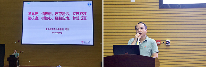学院党委书记梁杰为大家上了一堂意义深远的思政教育课--“学党史,悟思想,志存高远,立志成才;读校史,树信心,脚踏实地,梦想成真”。梁书记围绕“中国共产党为什么能”这一核心,对我党筚路蓝缕的历史作了生动的介绍,带领各位新生学习党的百年历史,并深入学习习近平总书记在庆祝中国共产党成立100周年大会上的重要讲话精神,领悟党的思想,汲取党的经验,打开大学的新篇章。同时,梁书记围绕“建设世界一流大学”这一核心,以“高起点创校,高水平建校”为方向,从“一个目标、两个阶段、三个定位、四个校区”等不同角度介绍了我校的基本校情,通过对深大校情校史系统而深入的讲解,为新生描绘了一个更立体更全面的深大形象。梁书记希望大家以身为一个深大人而自豪,树立对学校、对自我的信心,在梦开始的地方成就自我,收获精彩绚烂的大学生活。