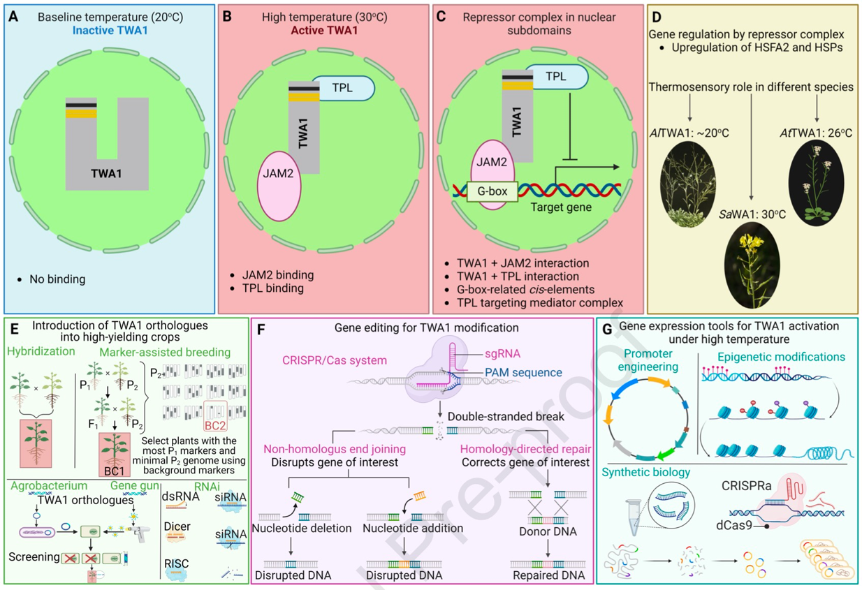 图 1. TWA1温度感受器调控机制的动力学模型及其对农业的潜在影响