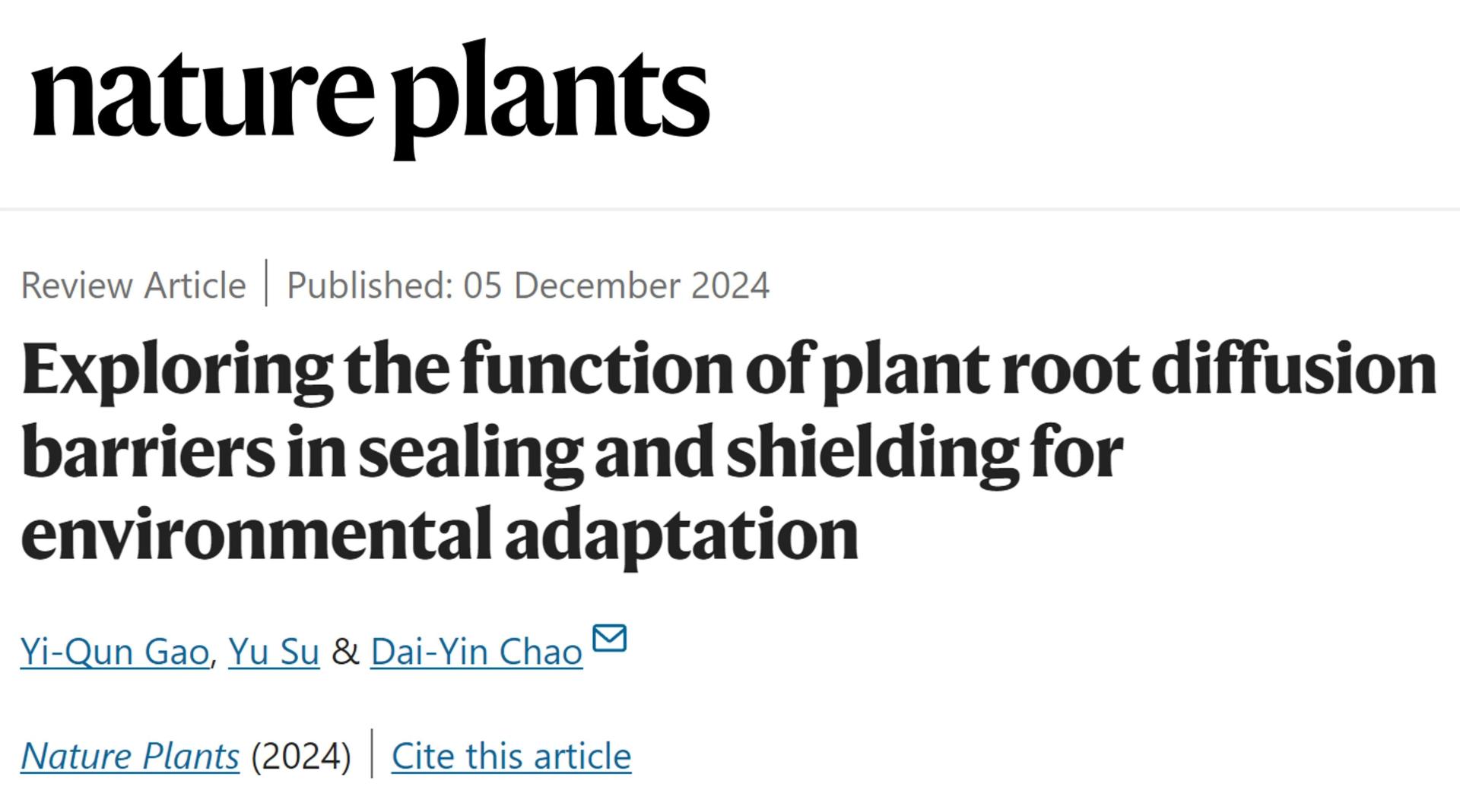 2024年12月5日,深圳大学生命与海洋科学学院高轶群教授课题组与中国科学院分子植物科学卓越创新中心晁代印研究院团队共同应邀在国际植物学权威期刊Nature Plants 发表题为“Exploring the function of plant root diffusion barriers in sealing and shielding for environmental adaptation”的长篇综述论文。