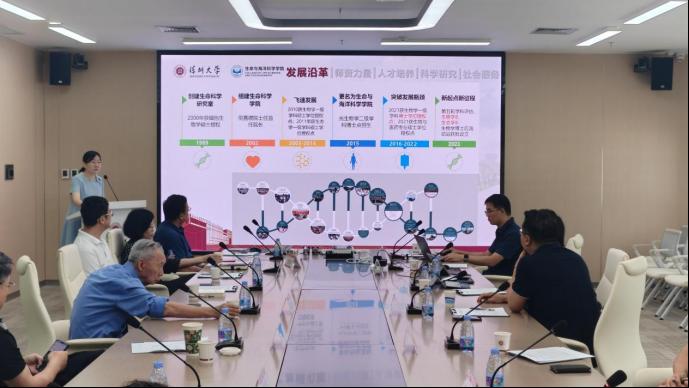 2025 年 6 月 6 日,深圳大学生命与海洋科学学院与深圳信立泰药业股份有限公司在丽湖校区守慧楼举行科研成果转化合作交流会议。双方围绕“基础研究产业化落地” 主题展开深入探讨,彰显学院 “聚焦前沿领域、产学研协同” 的发展理念。
