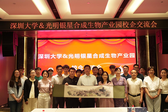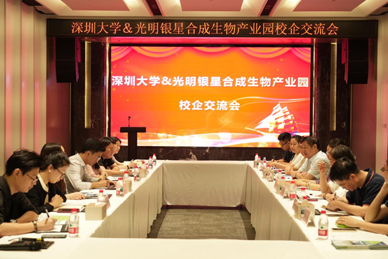 2025年5⽉21⽇上午,深圳⼤学副校⻓李永华,⽣命与海洋科学学院院⻓刘宏涛、党委书记梁杰、党委副书记⽑斐、系主任⽥静、系副主任肖时锋、辅导员黎科、张家洱,以及学⽣代表⼀⾏共计23人到光明银星合成⽣物产业园⾛访调研,开展“访企拓岗”⾏动,推动校企建⽴⻓期⼈才培养与⼈才供需协作关系。银星集团副总裁叶秀莲及相关负责⼈,深圳奥礼⽣物科技有限公司CTO⻨扬、深圳市中佳⽣物医疗科技有限公司徐晓娟等企业代表热情接待并参与此次活动。