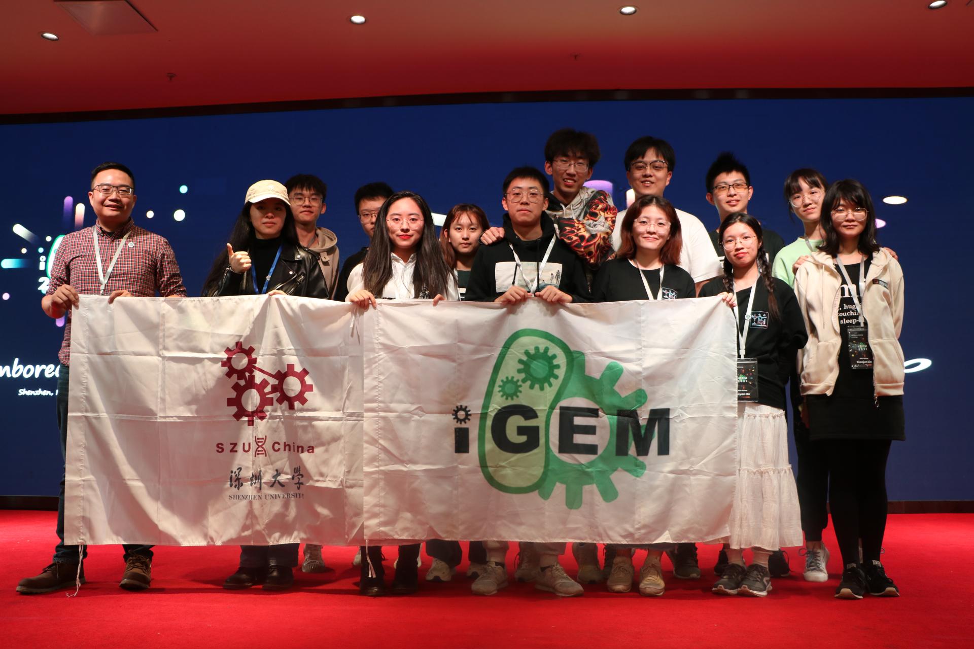 北京时间11月14日24:00,2021年国际基因工程机器大赛(iGEM)全球总决赛正式落下帷幕。由深圳大学生命与海洋科学学院组建的深圳大学iGEM竞赛团队(SZU-China)在众多参赛队伍中脱颖而出,进入全球前十(iGEM TOP 10),并斩获金奖(Gold Medal)及获得最佳制造类项目、最佳新基因元件两项提名(Nominated for Best Manufacturing Project, Nominated for Best New Basic Part),再续深大学子参与该项国际赛事以来的辉煌!