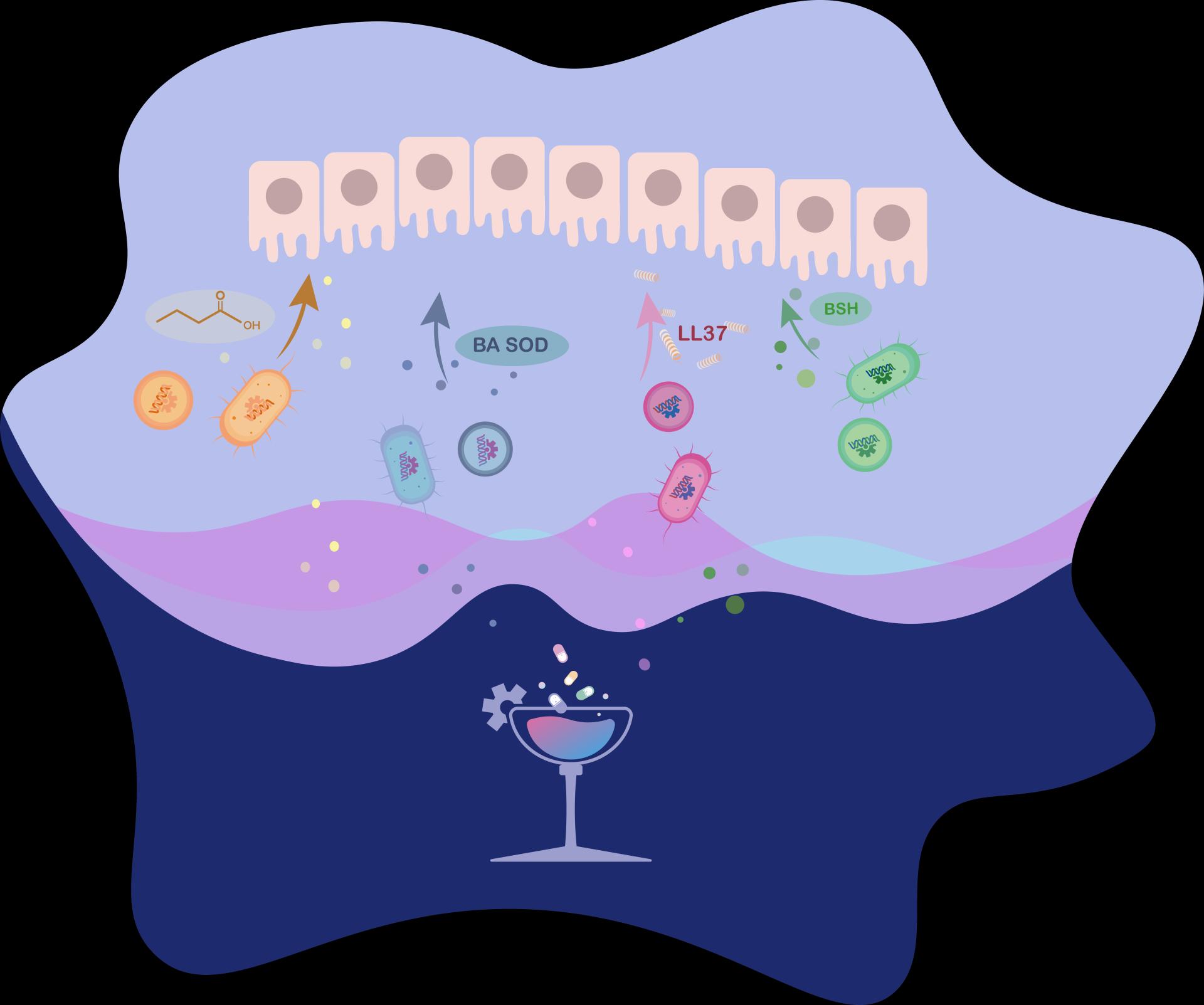 项目以本身存在于人肠道中的益生菌——乳酸乳球菌和大肠杆菌nissle 1917作为底盘工程菌。通过文献调研及专家访谈,团队在可能导致IBD的在众多潜在靶点中选择了四个最重要的靶点,并由此对工程菌进行改造。首先在底盘中引入了来自多形拟杆菌的硫酯酶来生产丁酸,以促进肠上皮粘膜细胞修复,抑制炎症反应。同时还考虑异源表达极低浓度的人抗菌肽LL37来减少内毒素对人体的危害。另外,工程菌也异源表达超氧化物歧化酶(Superoxide dismutase,SOD)来清理患处过量的活性氧代谢物,减缓肠道损伤。同时工程菌还异源表达胆盐水解酶,扭转患者肠道内因微生物胆盐水解酶活性不足而导致的胆汁酸代谢受损,达到缓释炎症的目的。IBD患者发病时其肠道环境通常呈酸性,因此项目采用可以响应环境酸性的启动子来调控表达目的基因。此外,为了适应后期产品上市时监管的要求,团队还利用热休克蛋白和三氯生抗性基因来取代普通的抗生素筛选,并设计了自杀开关来避免工程菌逃逸至血液乃至自然环境中,保证项目应用的安全性。最后,为了贴合患者的实际情况,团队将治疗元件设计成可更替模块化,以便灵活地调整表达的目的基因种类以及表达强度。