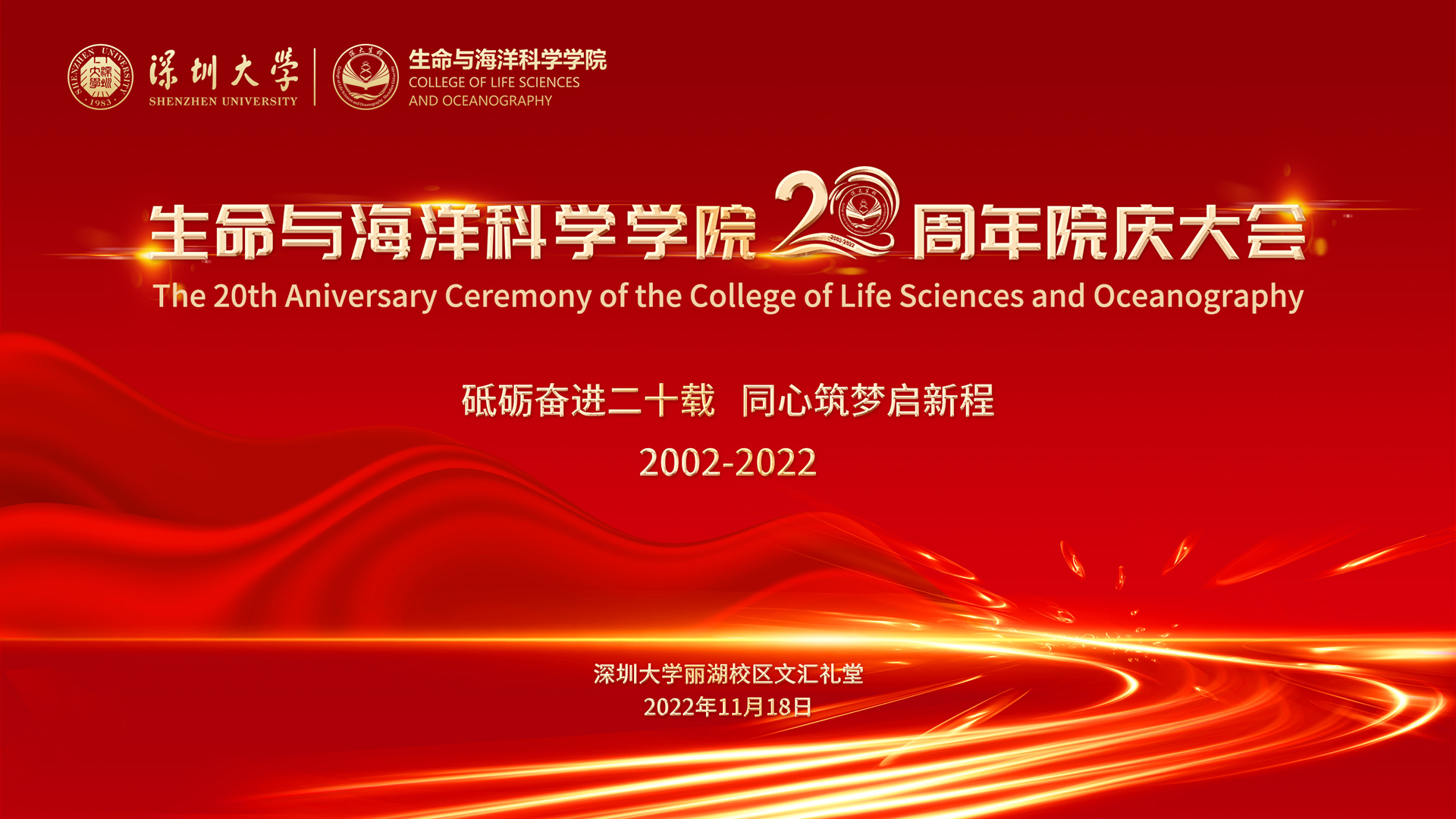 二十载砥砺奋进,春华秋实;二十载薪火相传,再启新程。11月18日,庆祝深圳大学生命与海洋科学学院建院20周年大会在丽湖校区文汇礼堂隆重举行。