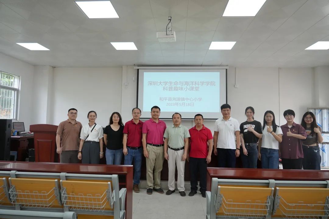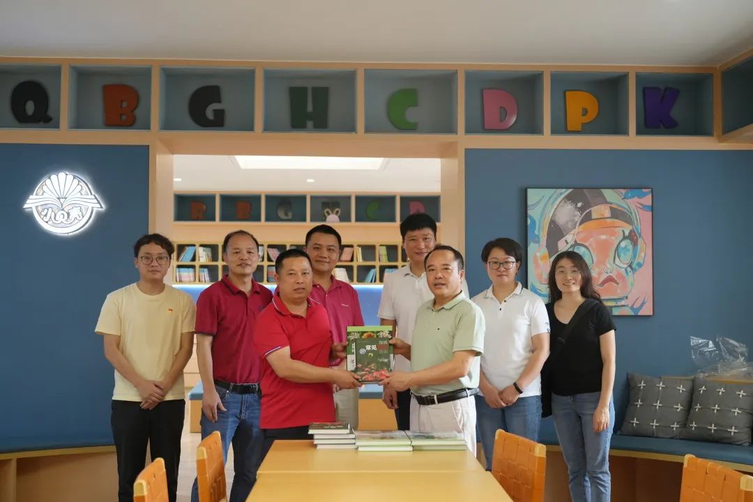 学院一行在挂牌常见鸟类科普标识牌后,前往浰源镇中心小学,在贝壳图书馆与该校老师们座谈,并为图书馆捐赠学院编著的《深圳常见花鸟图鉴》和《深圳大学校园常见植物图鉴》书籍各五本。
