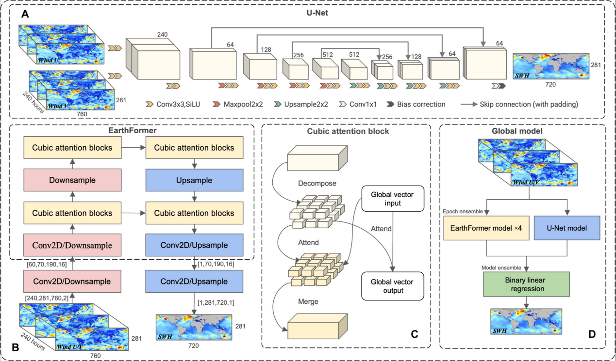 该人工智能海浪模型的输入输出以及模型架构示意图