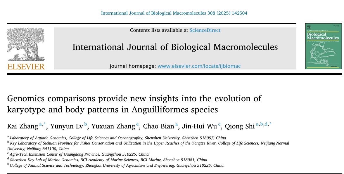 (影响因子7.7)上发表题为“Genomics comparisons provide new insights into the evolution of karyotype and body patterns in Anguilliformes species”的研究论文(图1)。