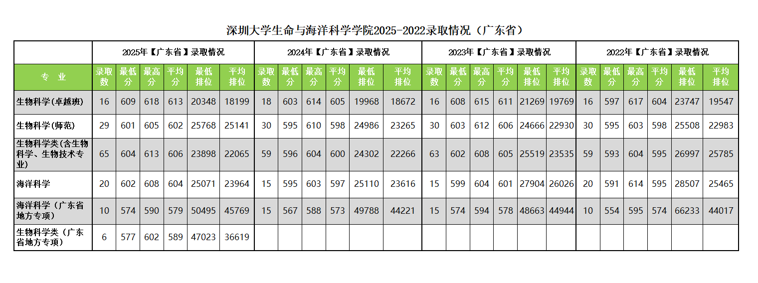 近三年本科生在全国以及省市各类竞赛中获奖31项,包括全国大学生生命科学大赛特等奖2项,1等奖4项,2等奖5项。多名同学考取包括新加坡国立大学,英国谢菲尔德大学,香港科技大学,厦门大学等知名国内外高校的研究生。2023届继续深造率达45%。就业多集中于粤港澳大湾区,包括深圳市海洋发展研究促进中心、广东内伶仃福田国家级自然保护区管理局等涉海事业单位,以及华大基因、深圳市朗诚科技股份有限公司等行业龙头企业。
